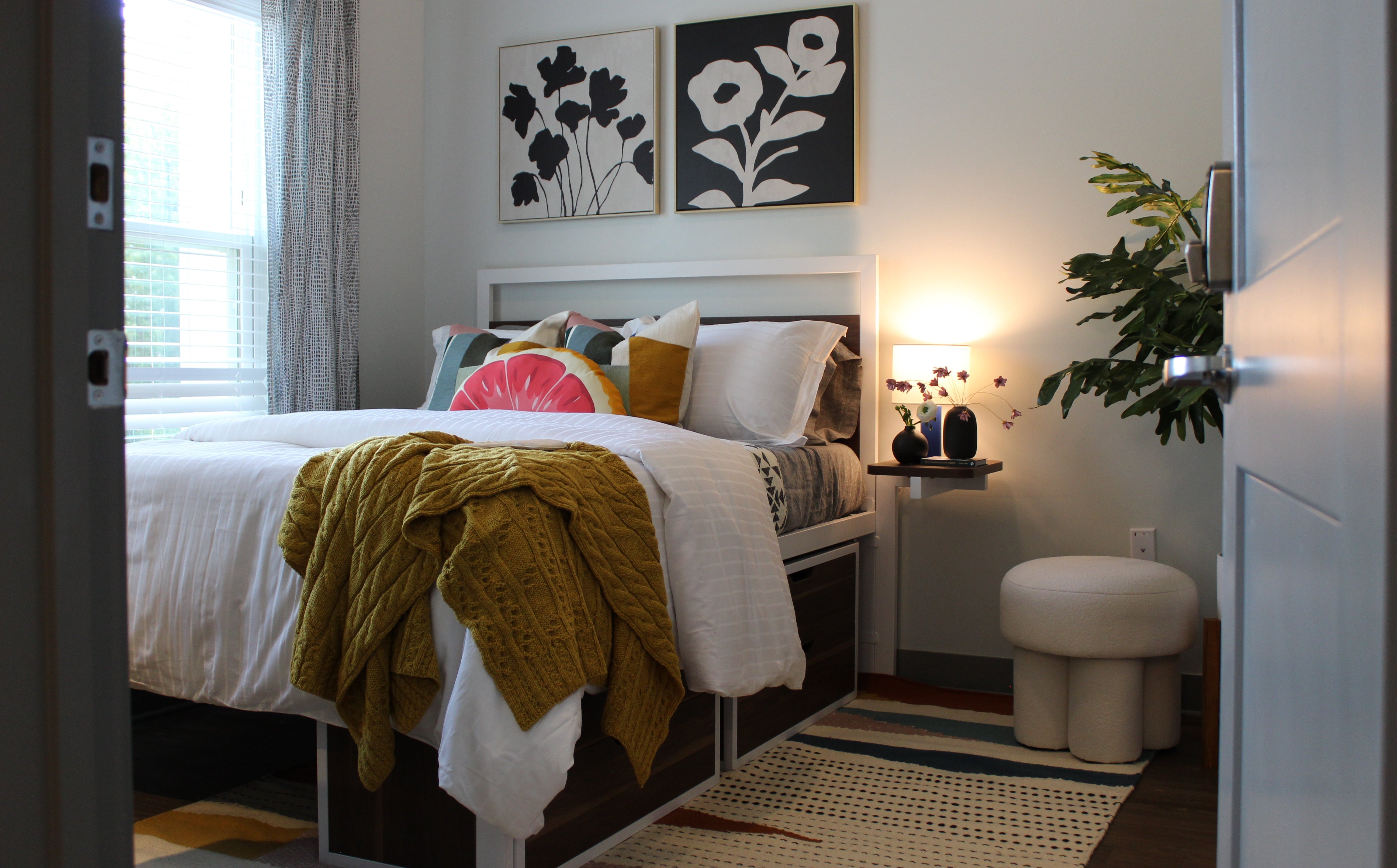 The Mod Nesting C-Table blends industrial style with functional versatility. Featuring a stamped steel frame and durable laminate top, it’s designed to slide easily over sofas or lounge chairs for convenient use. Its compact nesting design makes it ideal for flexible layouts and space-saving student living.
